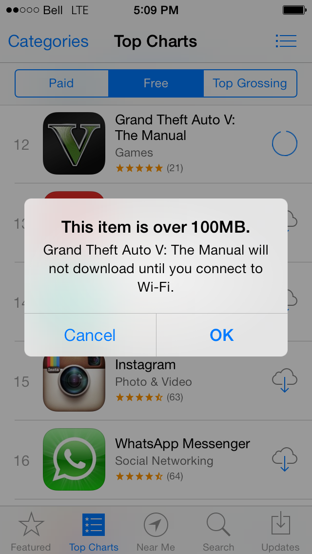 Apps larger than 100MB need to be downloaded over Wi-Fi.